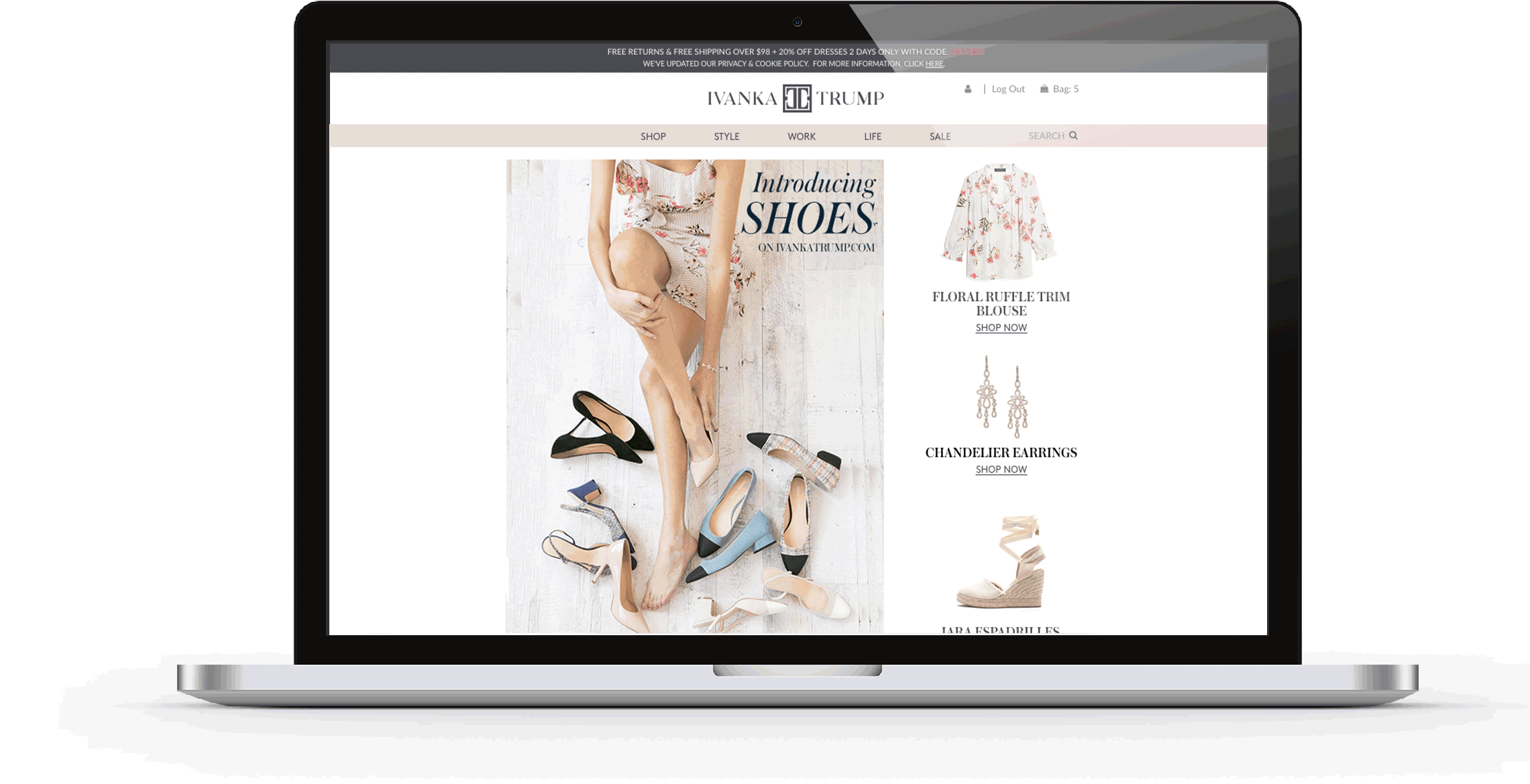 During my time at the Ivanka Trump fashion brand, the company launched their e-commerce website. The brand launched product categories on a rolling basis, including handbags, fashion jewelry, apparel, and footwear.