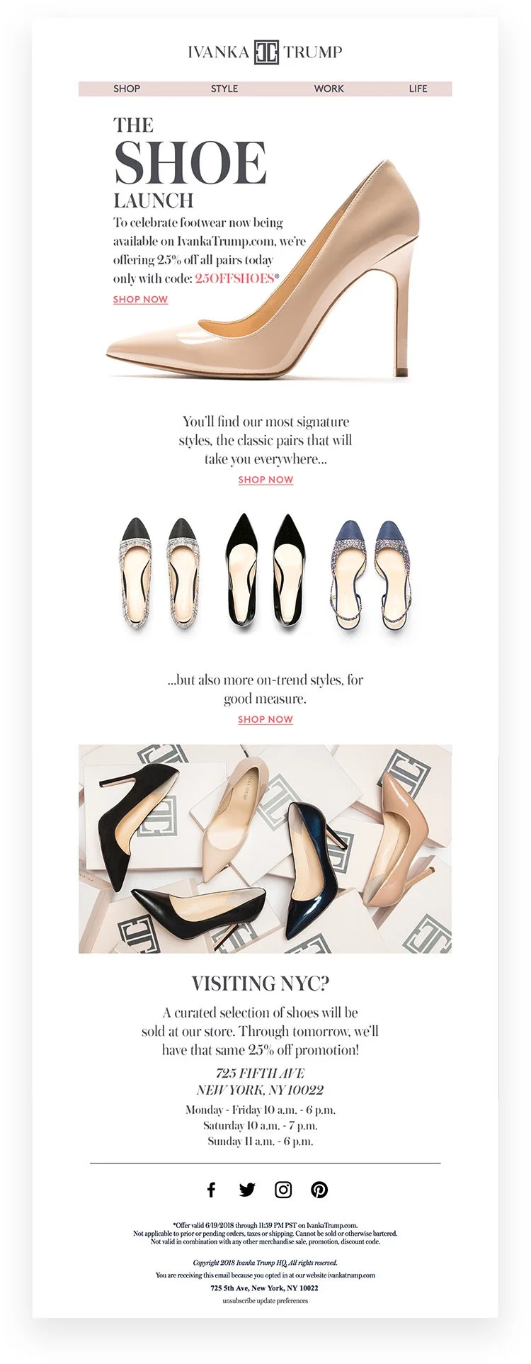 In my role I was integral in creating assets for these launches. I created website landing pages, email designs, social media posts, and digital marketing assets. This is an example of work I did for the shoe launch.