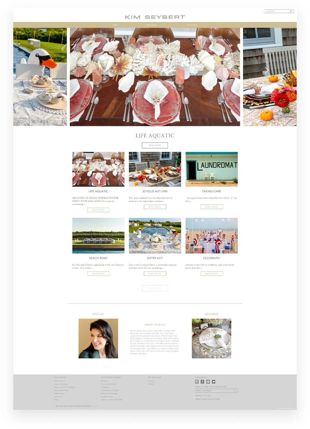 At Kim Seybert I designed and managed the launch of the new e-commerce website, giving the company a user-friendly consumer facing website for the first time in 15 years of business. I also designed and launched the company’s first blog website. I collaborated with a developer to manage the implementation of the site from start to finish over the course of 6 months. In addition, I styled, edited and produced product photography for the catalog website, social media and marketing emails. I also designed and maintained line sheets for new and existing product lines.